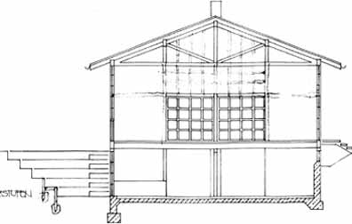 Besonderheiten: gesamtes Gebäude aus Holz: Konstruktion, Wände, Treppe