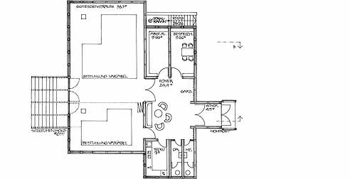 Besonderheiten: unterschiedlich geneigte Pultdächer kennzeichnen die einzelnen Raumzonen